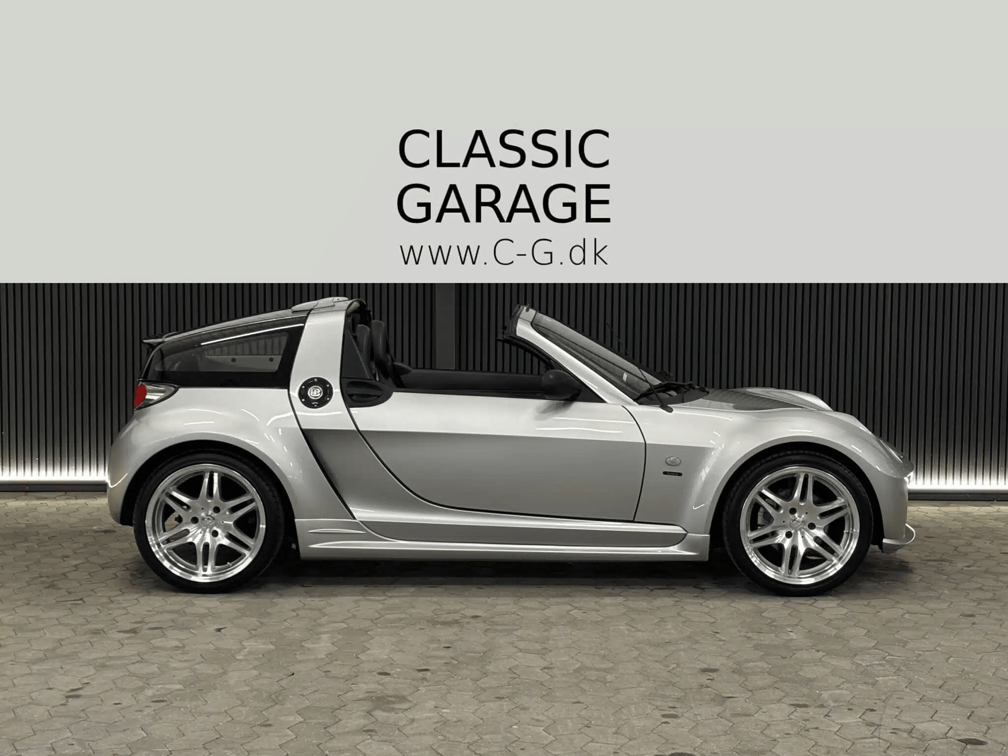 Sjældent syn (vist den eneste Brabus Coupé Cabriolet i DK) og masser af sjov med sine 100 hk og blot 800 kilo fordelt på 4 hjul som sidder helt ude i hvert sit hjørne for maksimal gokart fornemmelse! Med sine hele 4 forskellige tagkonstruktioner er man samtidig dækket godt ind til et hvert behov. Om man er til det sorte letvægtstag med let isolering, de sortblanke tagbøjler med eller uden kaleche eller bare 100% åbent rodster-look – så er det hele muligt her.