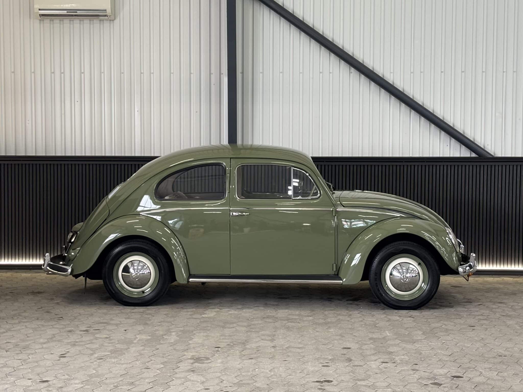 Det mest unikke er bilens lakering – den står i original Iceland Green, hentet direkte fra ubrugt lager hos en VW-forhandler, hvor malingen har været opbevaret i årtier. Det giver bilen en helt autentisk fremtoning, som man sjældent ser – og i samme ikke-vandbaserede maling som da den kom fra fabrikken i 1953.